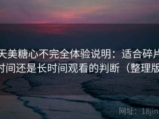 天美糖心不完全体验说明:适合碎片时间还是长时间观看的判断(整理版)
